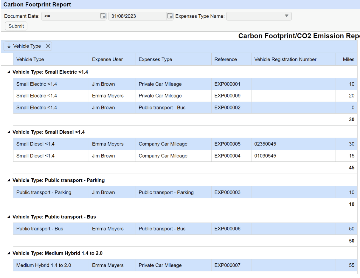 The emissions calculations were based on a combination of factors including the vehicle or fuel type and the claimed miles. Vehicle types were categorised into: