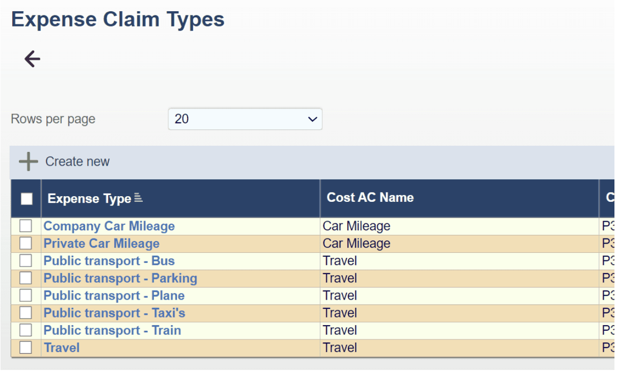 Expense Claim Types