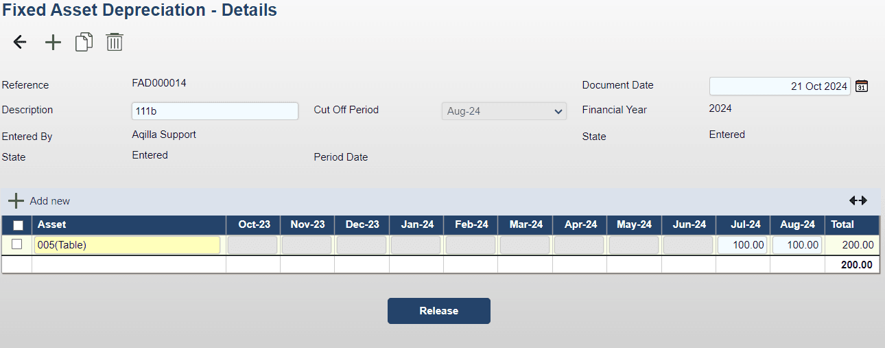You can also enquire on assets or depreciation documents to view detailed asset history, including acquisition costs, depreciation schedules, and past transactions – all from a single, user-friendly interface.