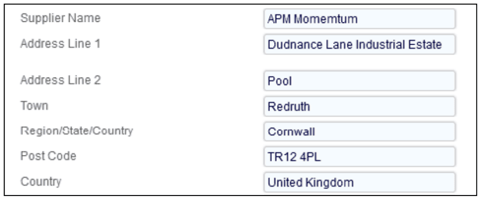 This format requires additional information that is not needed in other bank payment formats. In particular, the address information of the payee needs to be specified in a more rigid format. To help maintain this information, the labels of address lines 3 and 4 have been renamed “Town” and “Region/State/County”